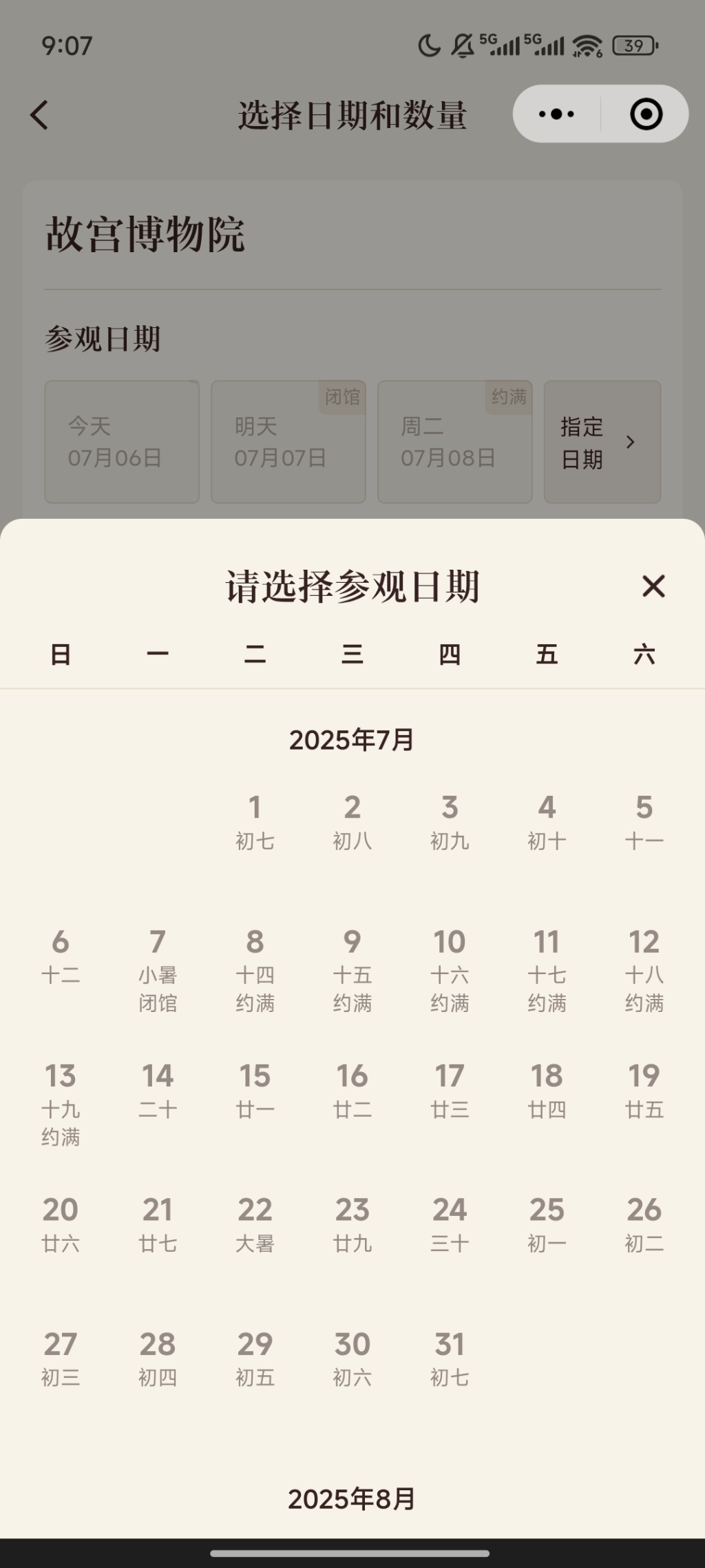 另一个事实是,故宫博物院这几年一直是”门极难进“,实行严格的预约参观制,需要提前通过故宫博物院网络售票网站或微信故宫博物院观众服务号实名预约门票,澎湃新闻记者近日曾多次打开“故宫博物院观众服务号”,结果未来七天的门票均已售罄。